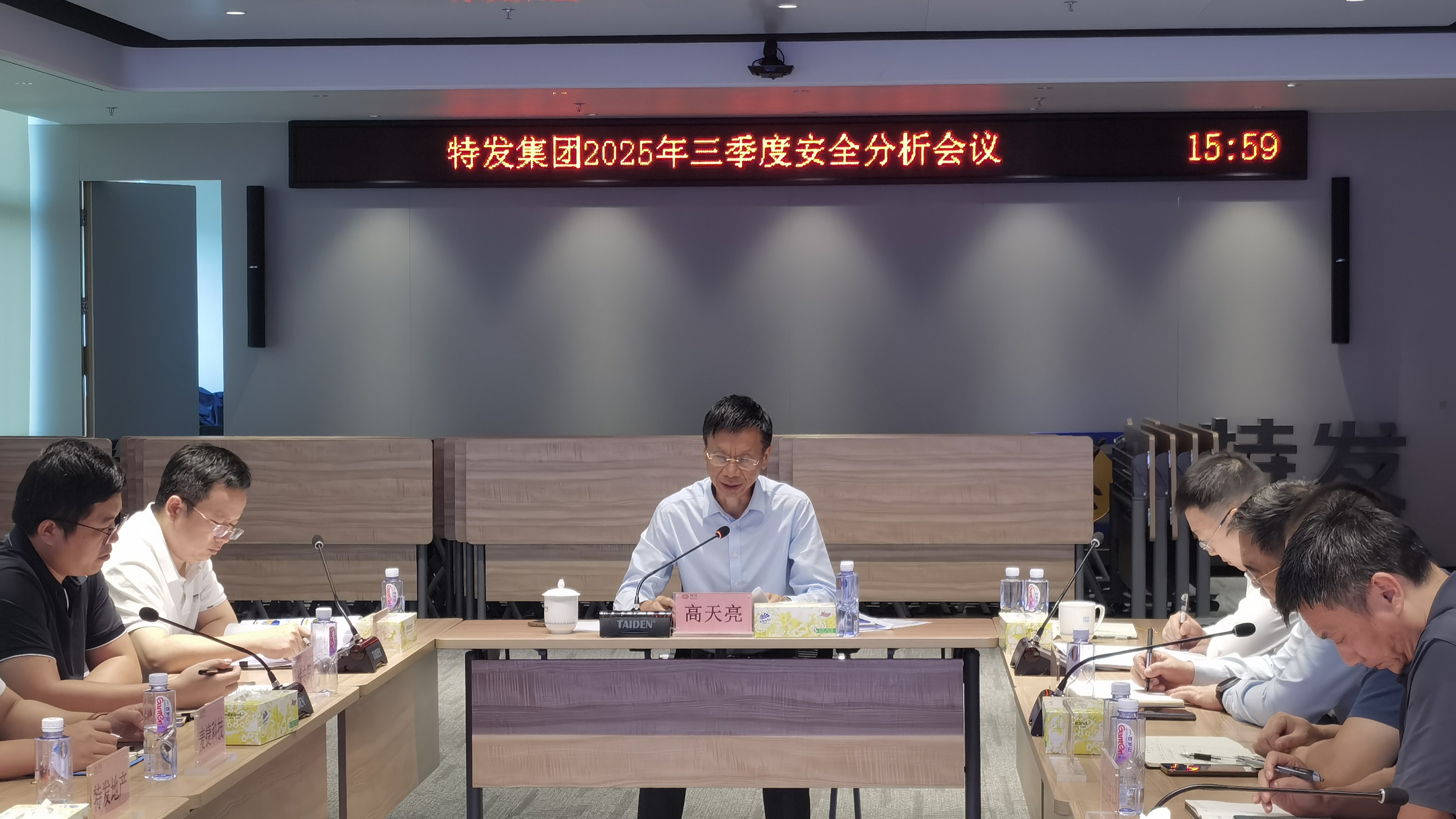 2025年9月25日下午,特發(fā)集團(tuán)召開2025年第三季度安全分析會。集團(tuán)總裁、安委會主任高天亮出席會議并講話,集團(tuán)副總裁、安全總監(jiān)李承主持會議。集團(tuán)安委辦、各企業(yè)主要負(fù)責(zé)人、分管安全工作領(lǐng)導(dǎo)及安全管理部門負(fù)責(zé)人參會。會議復(fù)盤了前期安全工作的成效與不足,充分研判當(dāng)前風(fēng)險形勢,部署四季度重點防控任務(wù),進(jìn)一步壓緊壓實各級安全管理責(zé)任。