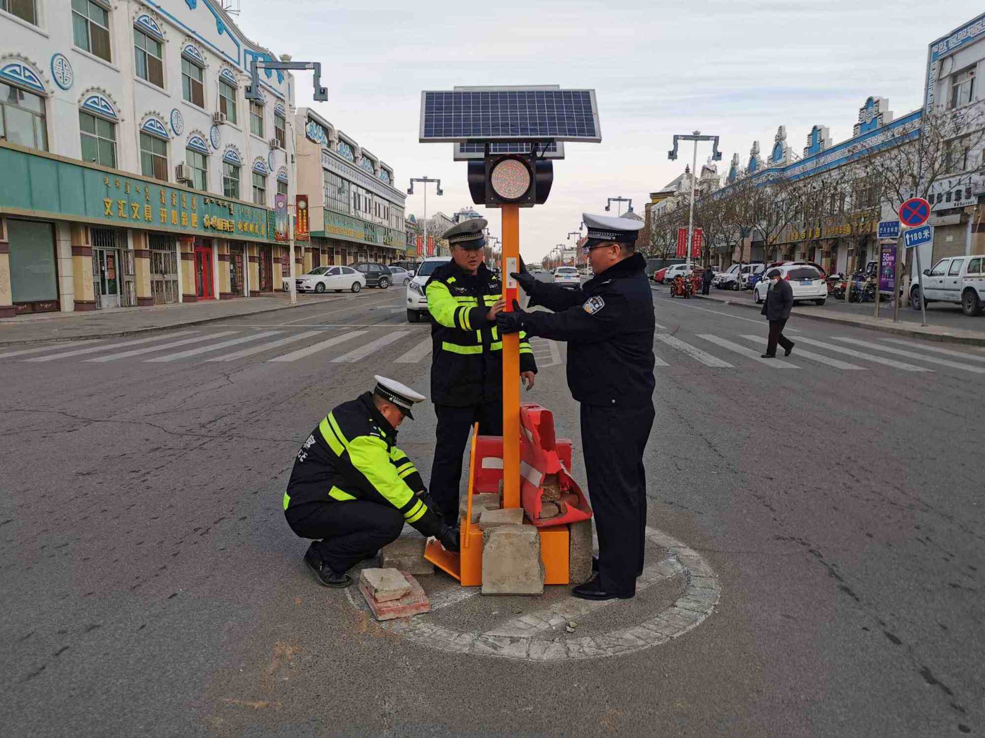 當(dāng)日,阿右旗公安局交管大隊值班民警上街面巡邏,巡邏至巴丹吉林鎮(zhèn)工商十字路口處時,發(fā)現(xiàn)路口紅綠燈被撞倒,經(jīng)勘察現(xiàn)場沒有發(fā)現(xiàn)任何肇事者遺留的痕跡。