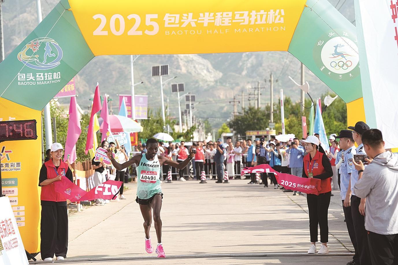 撞線后,男子組冠軍來(lái)自肯尼亞的選手Vincent kipchumba Toroitich表示:“這是我第一次來(lái)包頭,今天很開(kāi)心能取得這個(gè)成績(jī),感覺(jué)包頭非常好?!?/p>