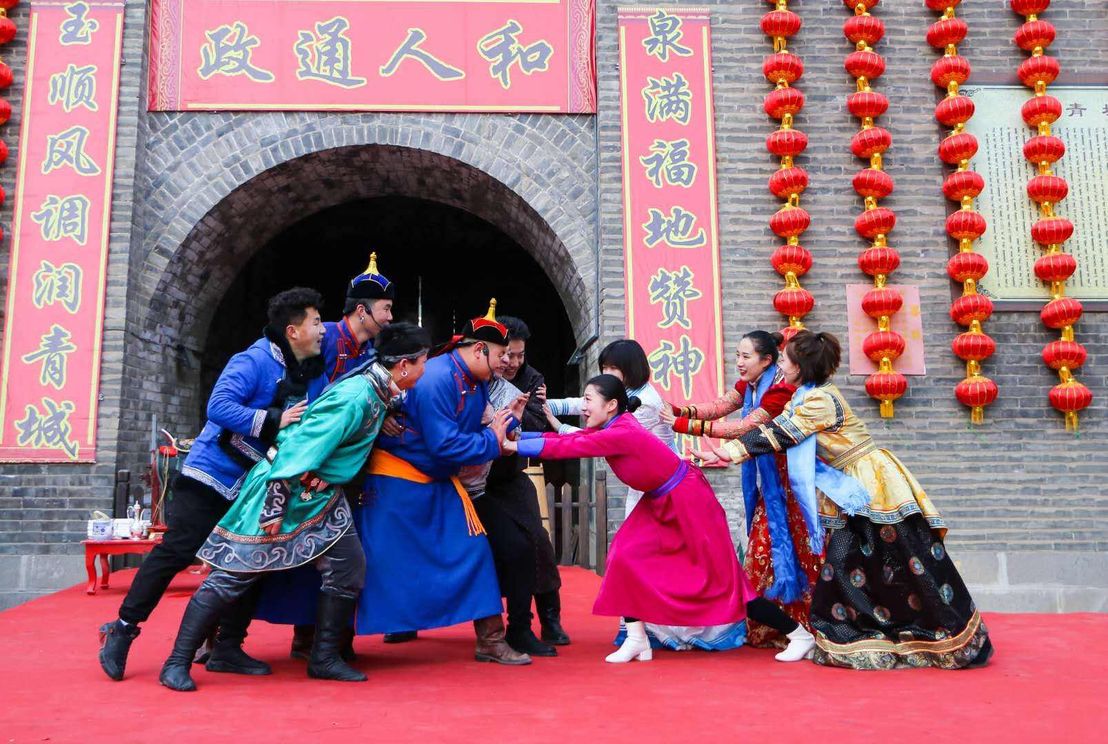 2月10日,作為大召文化廟會期間精心打造節(jié)目之一的歌舞表演《蒙古族婚禮》在塞上老街西口鐘鼓樓上演,向青城百姓展示蒙古族婚俗風(fēng)情。