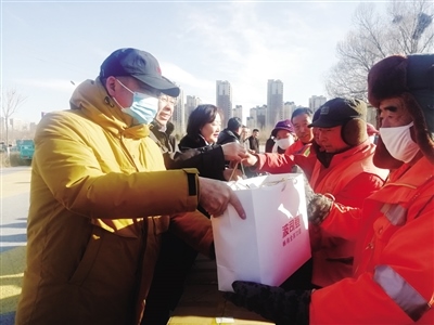 裴永志告訴呼和浩特晚報記者:“我們夫妻經(jīng)營著一家民營企業(yè),2017年冬季的一天,我出差辦事,當天早上7點多就趕到了機場,天氣非常寒冷。到了機場,看到有幾名環(huán)衛(wèi)工人正在打掃路邊的衛(wèi)生,其中一名年齡較大的環(huán)衛(wèi)工人摘下手套拾撿路邊的煙頭等垃圾。我當時非常感動,覺得環(huán)衛(wèi)工人平凡而又偉大,于是,就想著為他們做點什么。出差回來后,我把想法告訴了妻子,沒想到妻子也非常支持,最終,我們決定為環(huán)衛(wèi)工人捐贈棉衣。之后便與賽罕區(qū)環(huán)衛(wèi)局的工作人員進行對接。當年,我們自籌了15萬元,購買了206件棉衣,捐贈給了環(huán)衛(wèi)工人。”