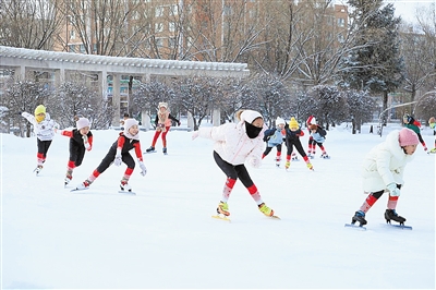 朔風(fēng)呼嘯,銳志似鋼驅(qū)冷意;皓雪紛飛,決心如鐵戰(zhàn)寒威。