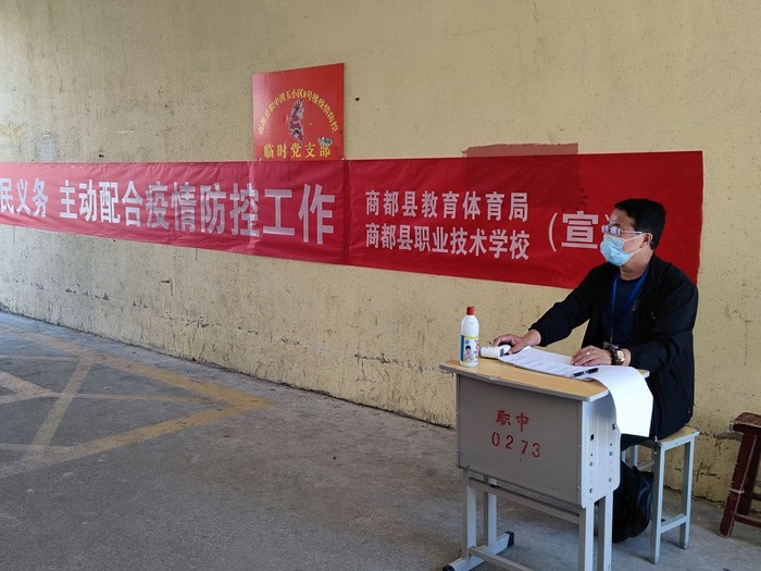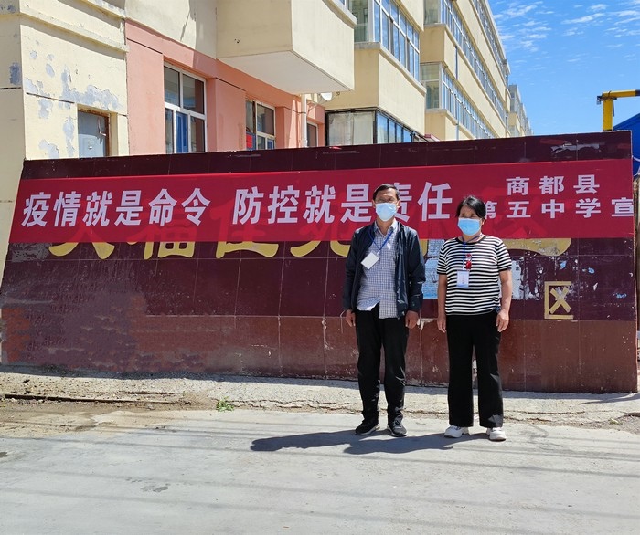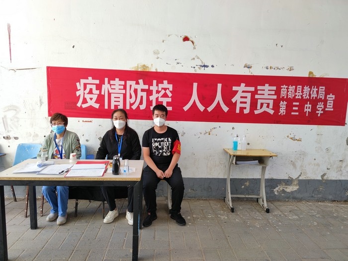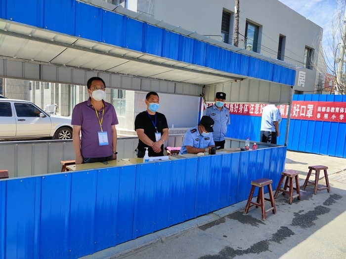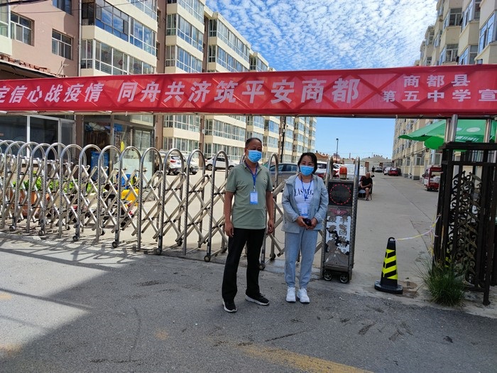 在學(xué)校站在三尺講臺(tái),拿起書(shū)本,面向孩子,他們是一名光榮的人民教師。走上抗疫一線,穿上白底藍(lán)邊的防護(hù)服,拿起測(cè)溫儀,他們是一名光榮的抗疫防疫工作者。以師者擔(dān)當(dāng),同心戰(zhàn)“疫”,眾志成城,商都必勝!