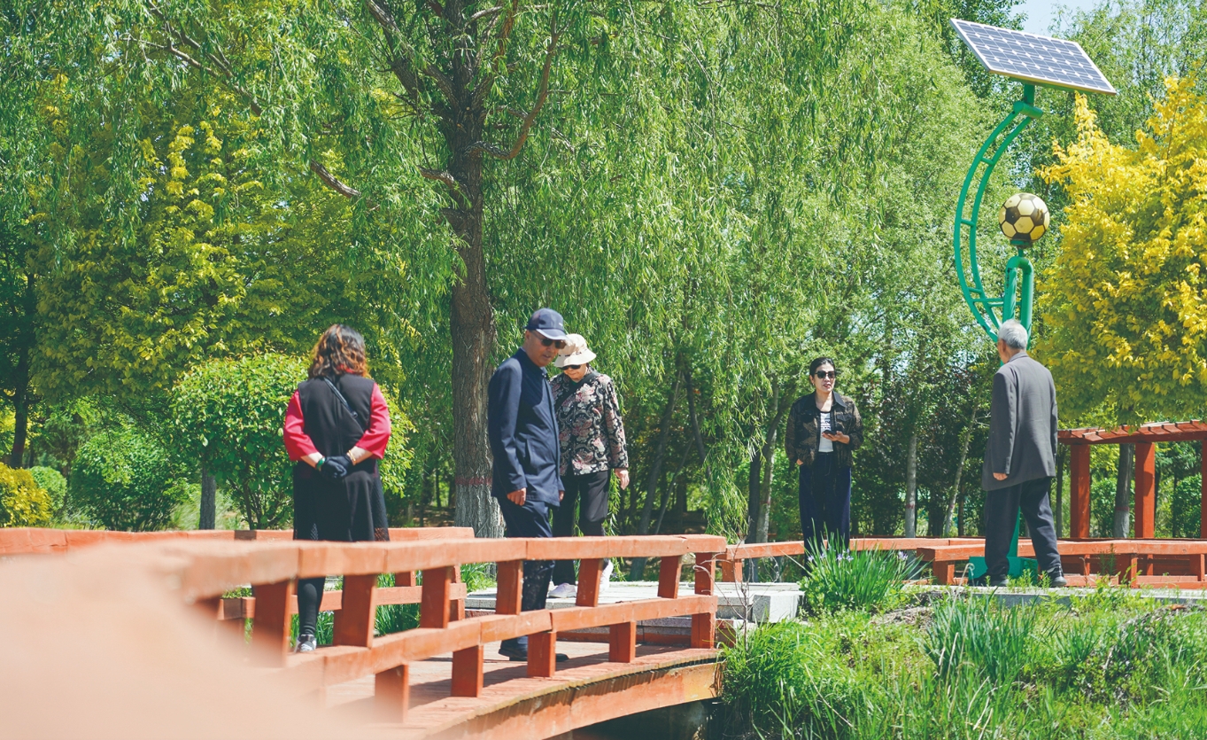 市民在霸王河生態(tài)公園散步