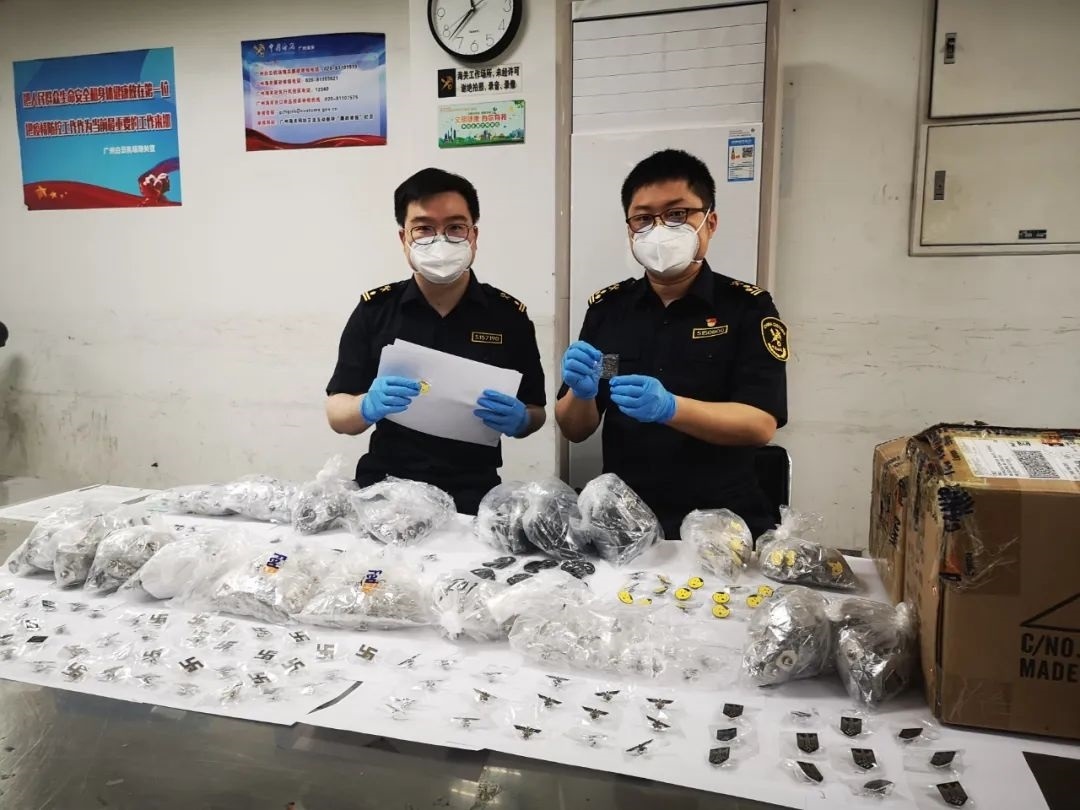 廣州海關(guān)在出境快件渠道截獲1881枚納粹徽章