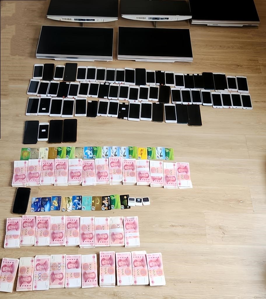 這是在抓捕現(xiàn)場(chǎng)查獲的作案工具和涉案現(xiàn)金。(受訪單位供圖)