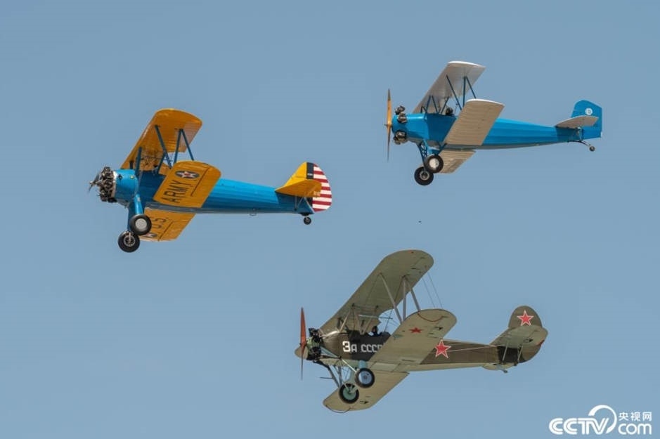 西班牙馬德里舉行老式飛機(jī)航空展,多型老式飛機(jī)進(jìn)行飛行表演。