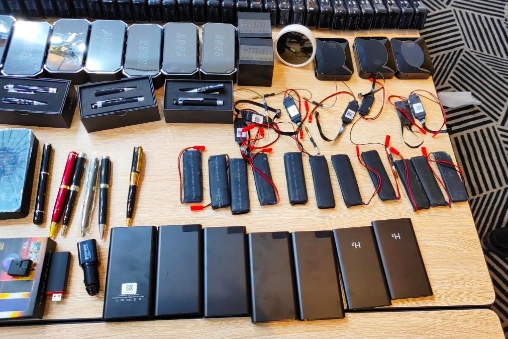 為及時(shí)斬?cái)喾缸镦湕l,饒河縣公安局成立專案組,全力攻堅(jiān)此案。經(jīng)過(guò)深入研判分析,專案組鎖定了嫌疑人王某、龔某、陳某身份。在抓獲現(xiàn)場(chǎng),警方發(fā)現(xiàn)偽裝成充電寶、打火機(jī)、插座、燈泡等物品的各類竊聽(tīng)竊照專用器材,種類之多、數(shù)量之大,讓在場(chǎng)民警大為震驚。