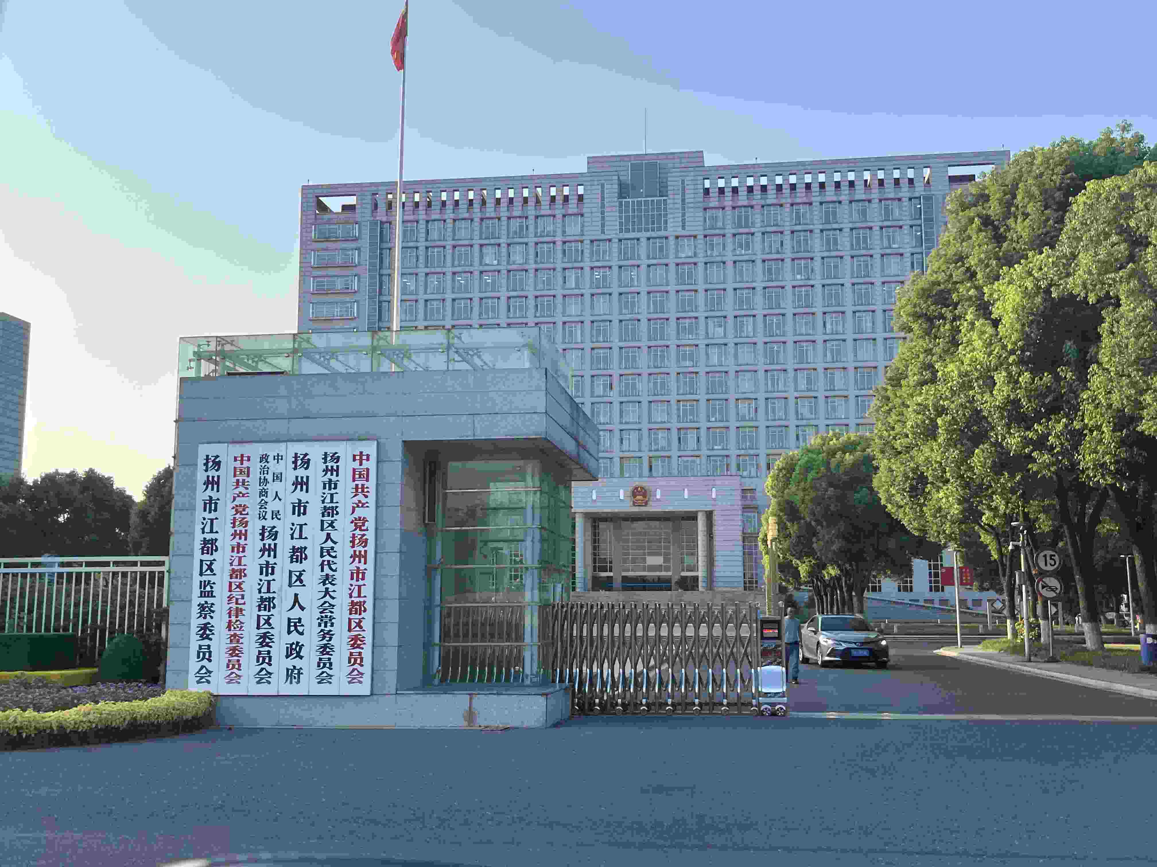 江都區(qū)政府門前?!案邥洝薄皩O主任”曾在此“演戲”騙取受害人信任。