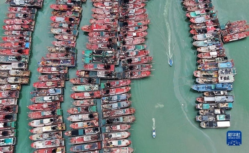 臺風“蘇拉”靠近粵東近海,廣東省汕尾港避風塘,漁船歸港避風。