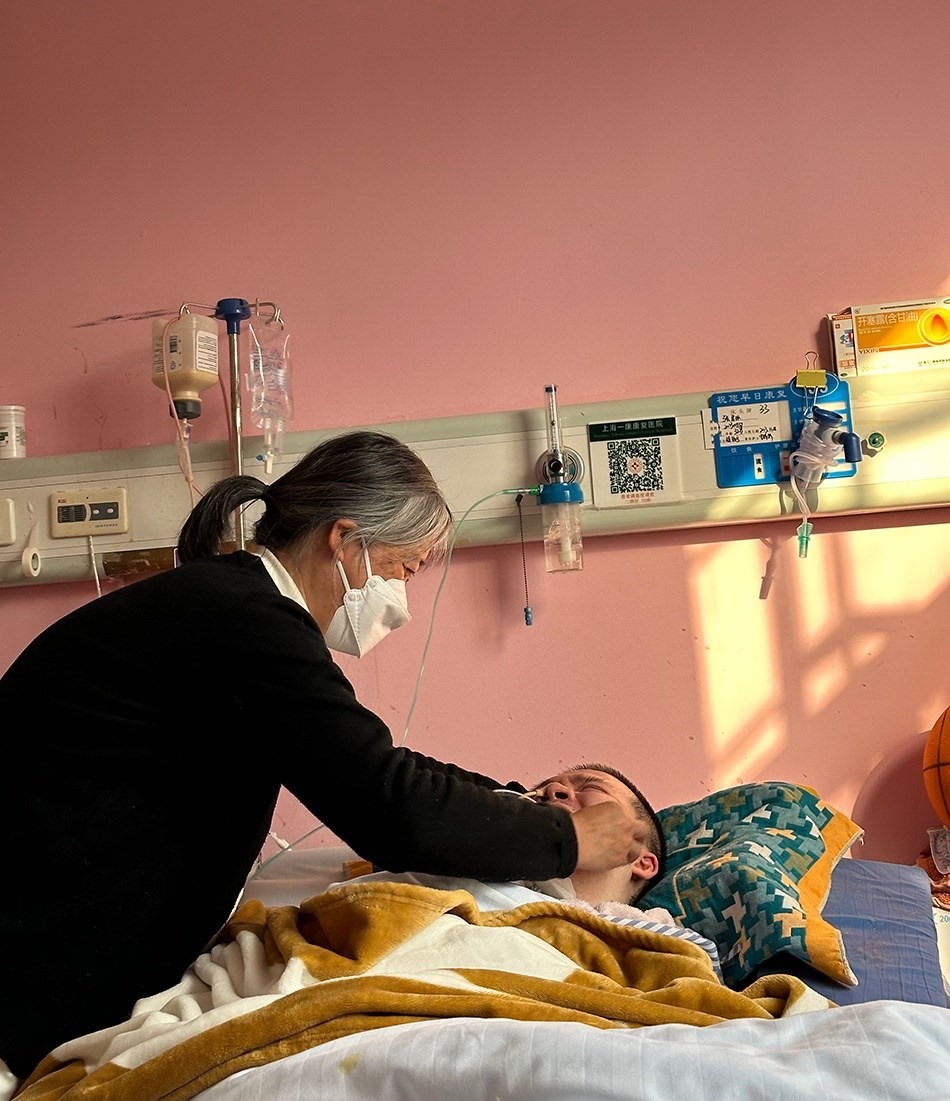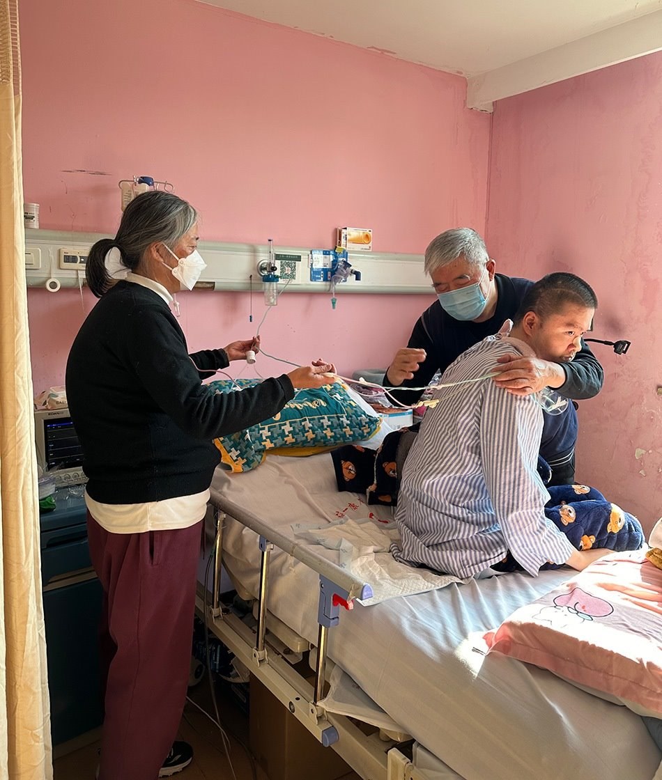 一月上旬的一個下午,鄭建英像過去一千多個日子一樣,坐在兒子床尾的椅子上,盯著他床頭監(jiān)視器的氧保。這幾年,她已經(jīng)形成條件反射,當數(shù)值低于92時,她會從椅子上彈起來幫他吸痰。