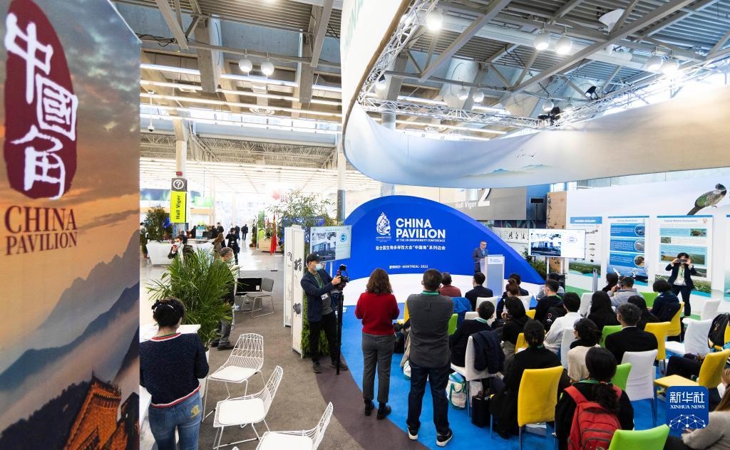 12月8日,在加拿大蒙特利爾舉行的《生物多樣性公約》第十五次締約方大會(COP15)第二階段會議上,中國角開展的一場邊會活動聚焦生態(tài)保護(hù)紅線。 新華社發(fā)(鄒崢攝)