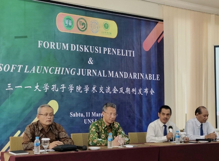 人民網(wǎng)雅加達(dá)3月12日電 (記者張杰)11日下午,三一一大學(xué)孔子學(xué)院學(xué)術(shù)期刊《Mandarianable》發(fā)布會(huì)及四周年生日會(huì)在梭羅隆重舉行。西華大學(xué)校長劉樹根、三一一大學(xué)學(xué)術(shù)事務(wù)副校長(尤努斯)Mr.Yunus教授、研究與創(chuàng)新副校長(坤卓落)Mr.Kuncoro教授、合作與信息副校長(夏啟丹)Mr. Sajidan教授、成都市政府代表潘文吉、張友東、羅會(huì)成、三一一大學(xué)部分院系代表等嘉賓出席了本次發(fā)布會(huì)。