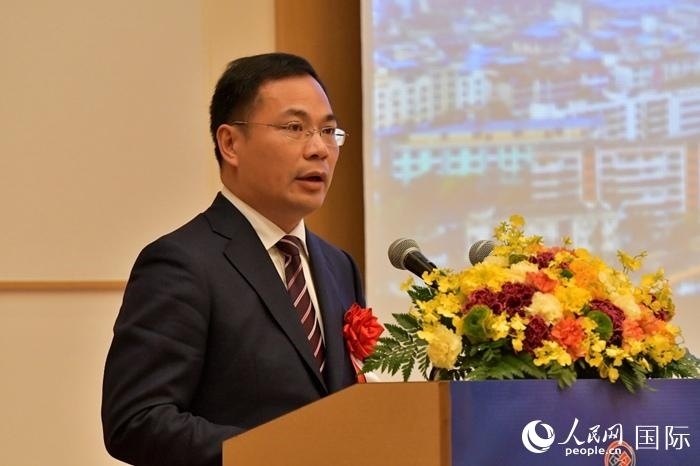 中國駐日本大使館經(jīng)濟商務公使代表申宇致辭。人民網(wǎng) 滕雪攝