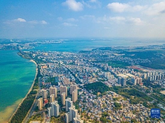 這是海南省洋浦經(jīng)濟(jì)開發(fā)區(qū)所在的環(huán)新英灣地區(qū)(無人機(jī)照片,2月26日攝)。新華社記者 蒲曉旭 攝