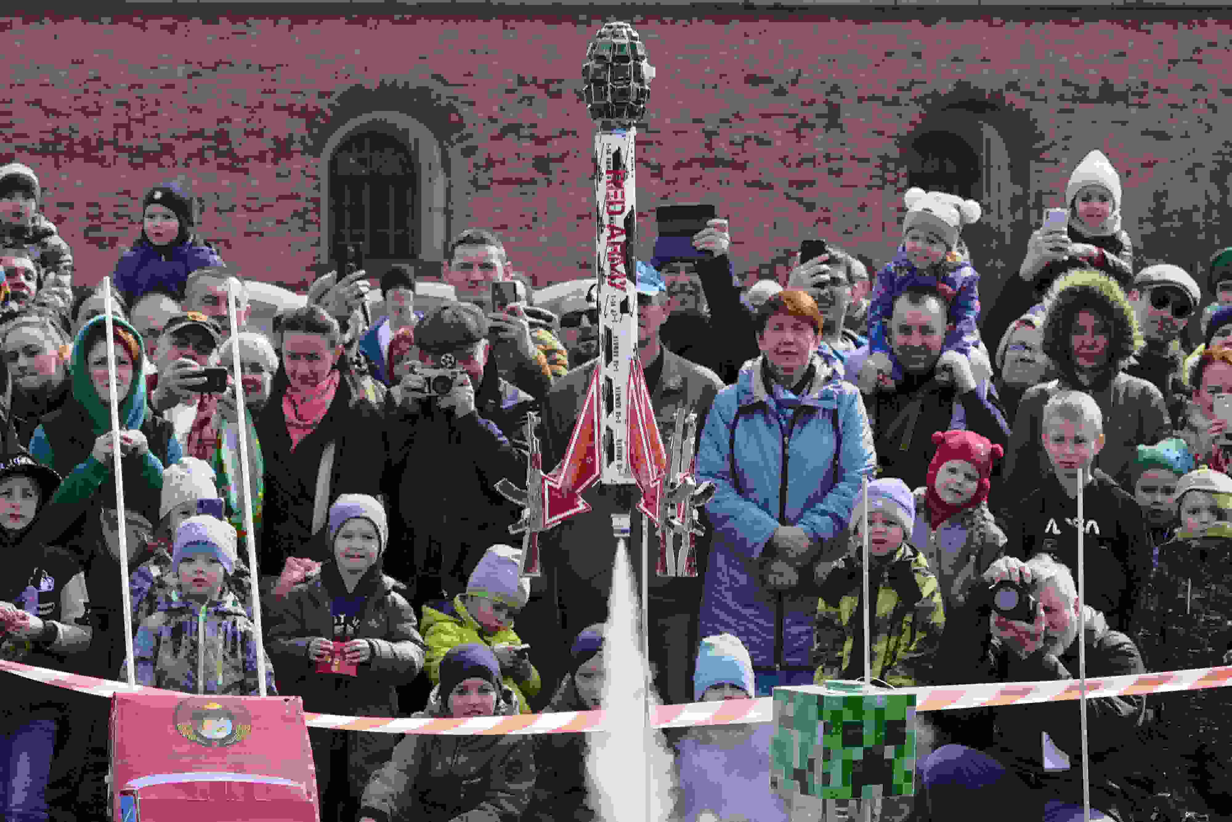 當地時間2023年4月16日,俄羅斯圣彼得堡,民眾發(fā)射火箭模型紀念人類首次太空飛行62周年。 視覺中國