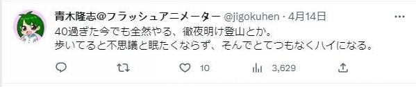 不過也有網(wǎng)友表示自己“老當益壯”。“我現(xiàn)在40多了,完全可以做到,比如通宵爬山之類。很不可思議的是只要走起來就不覺得困,所以能爬到超越自己預想的高度”。