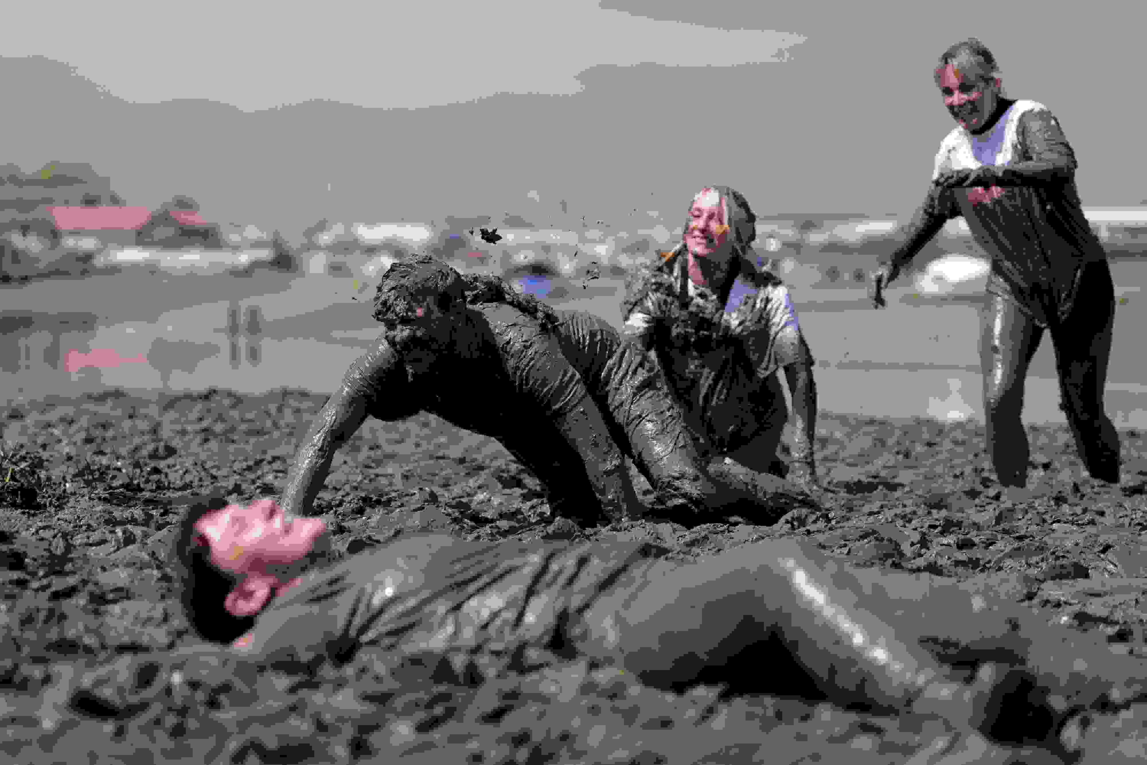當(dāng)?shù)貢r間2023年5月14日,英國莫爾登,參賽者參加一年一度的滾泥巴大賽。該大賽是一項慈善活動,參賽者要在埃塞克斯郡的黑水河河床上賽跑。 視覺中國