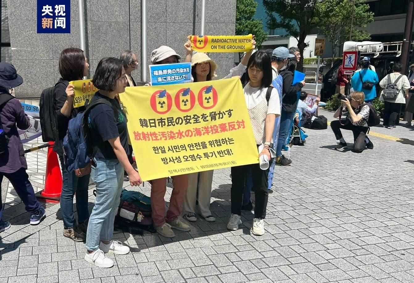 日本東電公司門前民眾集會(huì)反對(duì)福島核污染水排海計(jì)劃