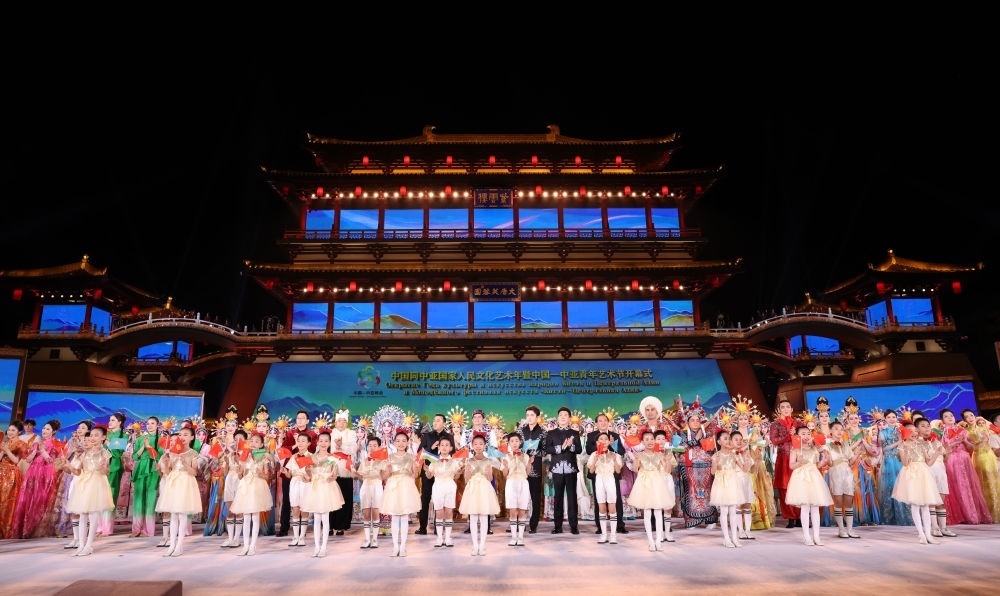 宴會后,習近平夫婦同貴賓們共同觀看中國同中亞國家人民文化藝術年暨中國-中亞青年藝術節(jié)開幕式演出。