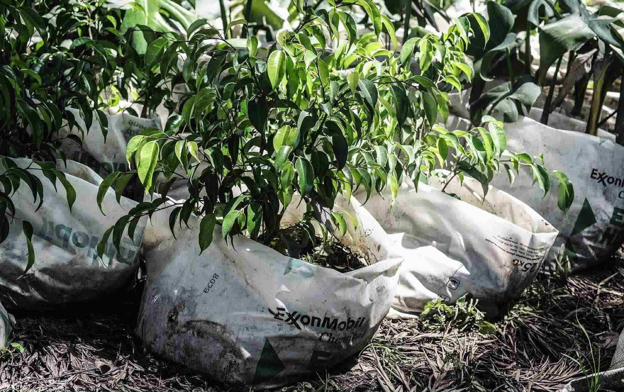 當(dāng)?shù)貢r(shí)間2023年5月7日,肯尼亞納庫魯?shù)拿缙岳铮?松梨诎b袋包裹著一棵樹苗。隨著世界充斥著塑料廢物,政府間談判委員會(huì)(INC)內(nèi)塑料條約的支持者正在倡導(dǎo)一項(xiàng)具有法律約束力的文書,減少石化工業(yè)生產(chǎn)的原生塑料。