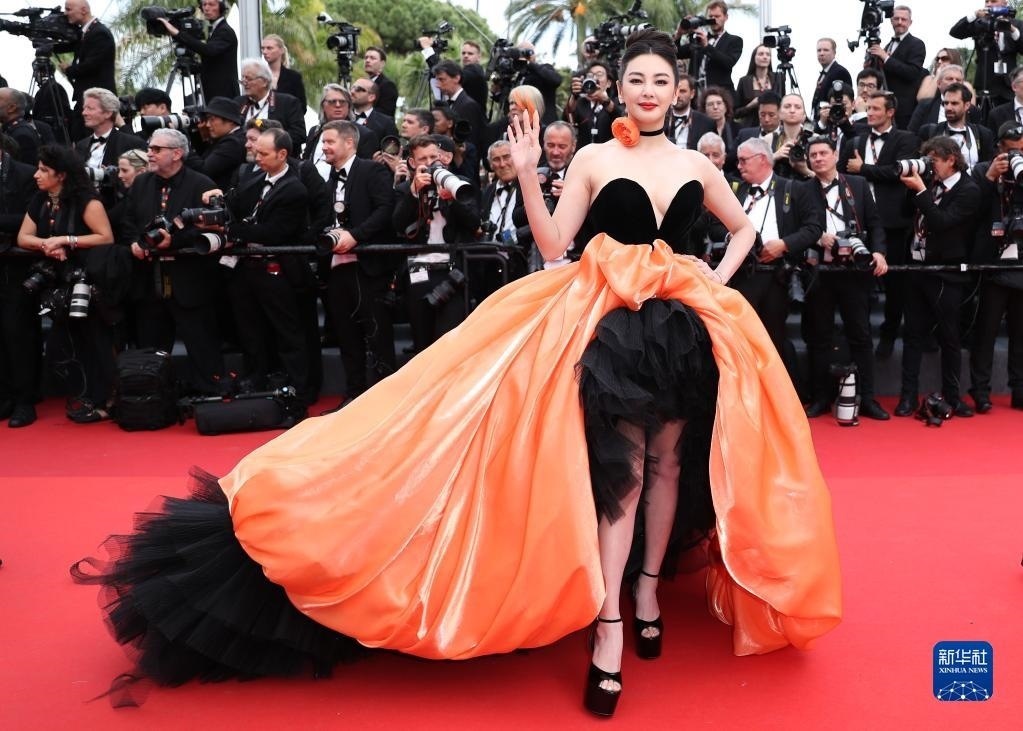 5月16日,在法國戛納舉行的第76屆戛納國際電影節(jié)上,演員關(guān)曉彤亮相紅毯。   新華社記者 高靜 攝