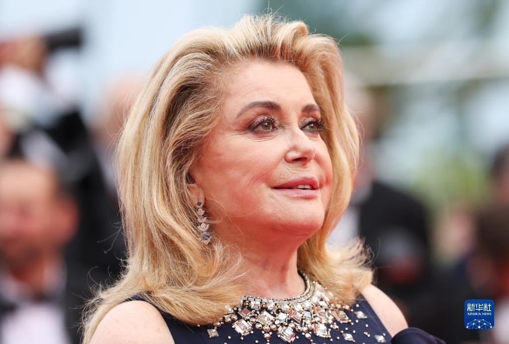 5月16日,在法國戛納舉行的第76屆戛納國際電影節(jié)上,演員凱瑟琳·德納芙亮相開幕式紅毯。   新華社記者 高靜 攝