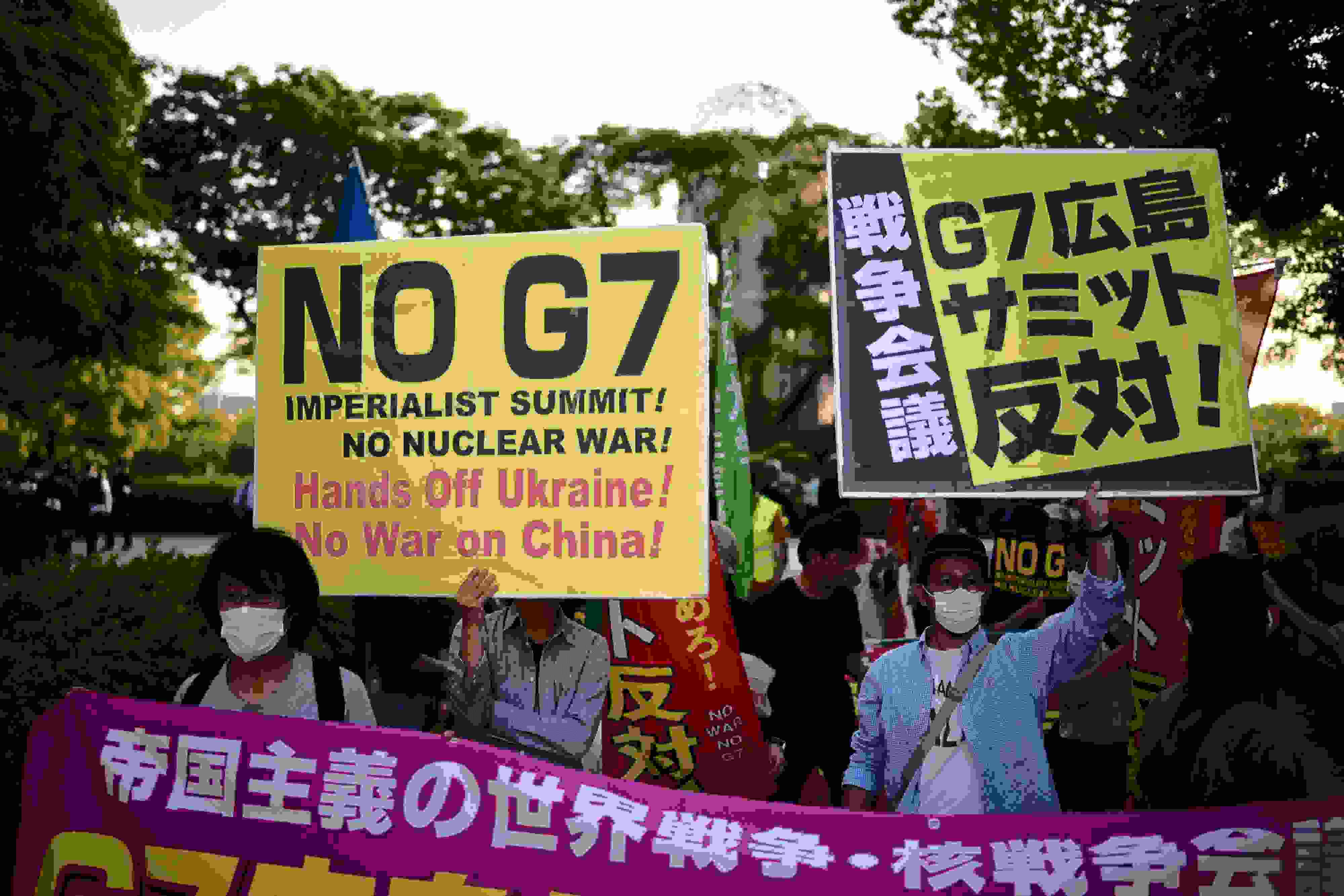 日本民眾抗議七國集團(tuán)峰會在廣島召開