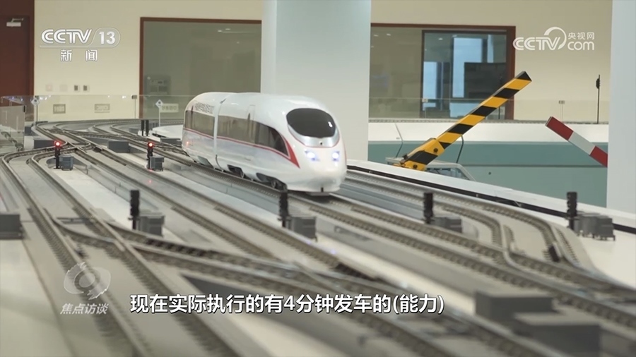 中國通號研究設計院集團副總工程師江明:“我們要保證所有的車在一條線路上能夠安全,同時又比較密集地運行。我們可以實時知道現(xiàn)在車所在的位置,同時還能知道車現(xiàn)在的速度。經過這么多年的努力,現(xiàn)在實際執(zhí)行的有4分鐘發(fā)車的能力?!?/p>