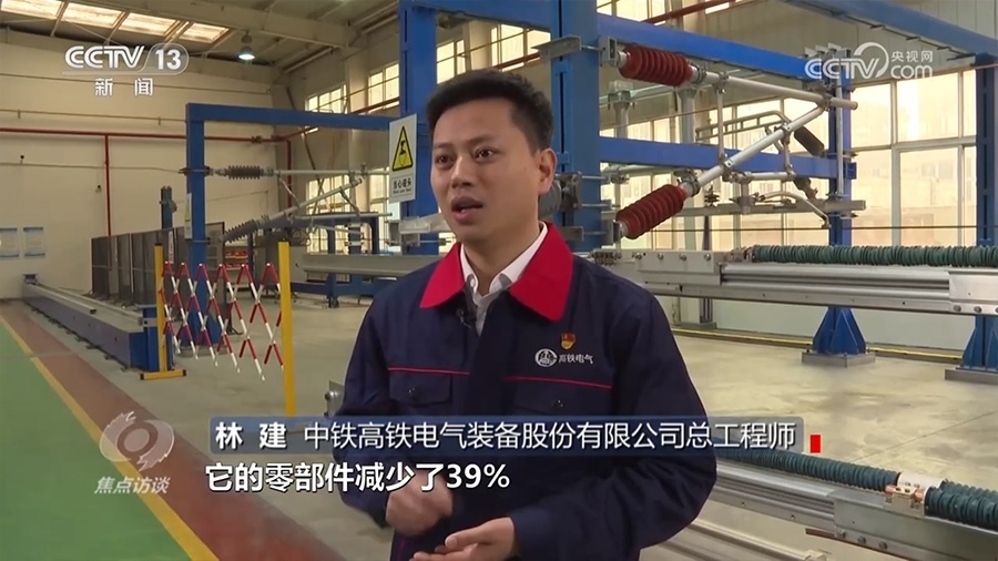 中鐵高鐵電氣裝備股份有限公司總工程師林建:“簡統(tǒng)化腕臂裝置相對于傳統(tǒng)的鋁合金三角腕臂裝置來說,它的零部件減少了39%,在運營過程中,在同等滿足系統(tǒng)使用要求情況下,零部件越少,故障率越小,安全可靠性就會更高?!?/p>