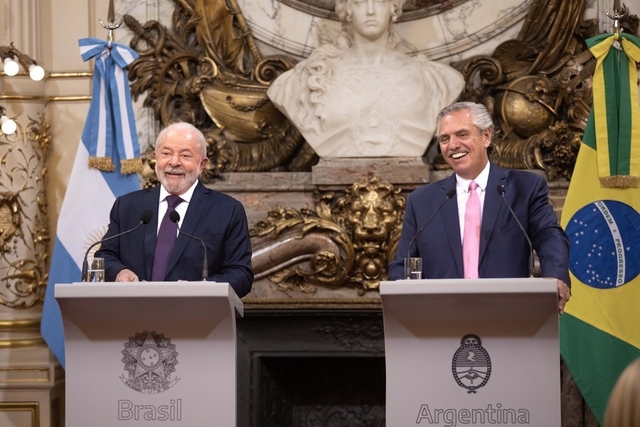 1月23日,在阿根廷布宜諾斯艾利斯,阿根廷總統(tǒng)費(fèi)爾南德斯(右)和巴西總統(tǒng)盧拉在玫瑰宮出席新聞發(fā)布會。新華社發(fā)(馬丁·薩巴拉攝)