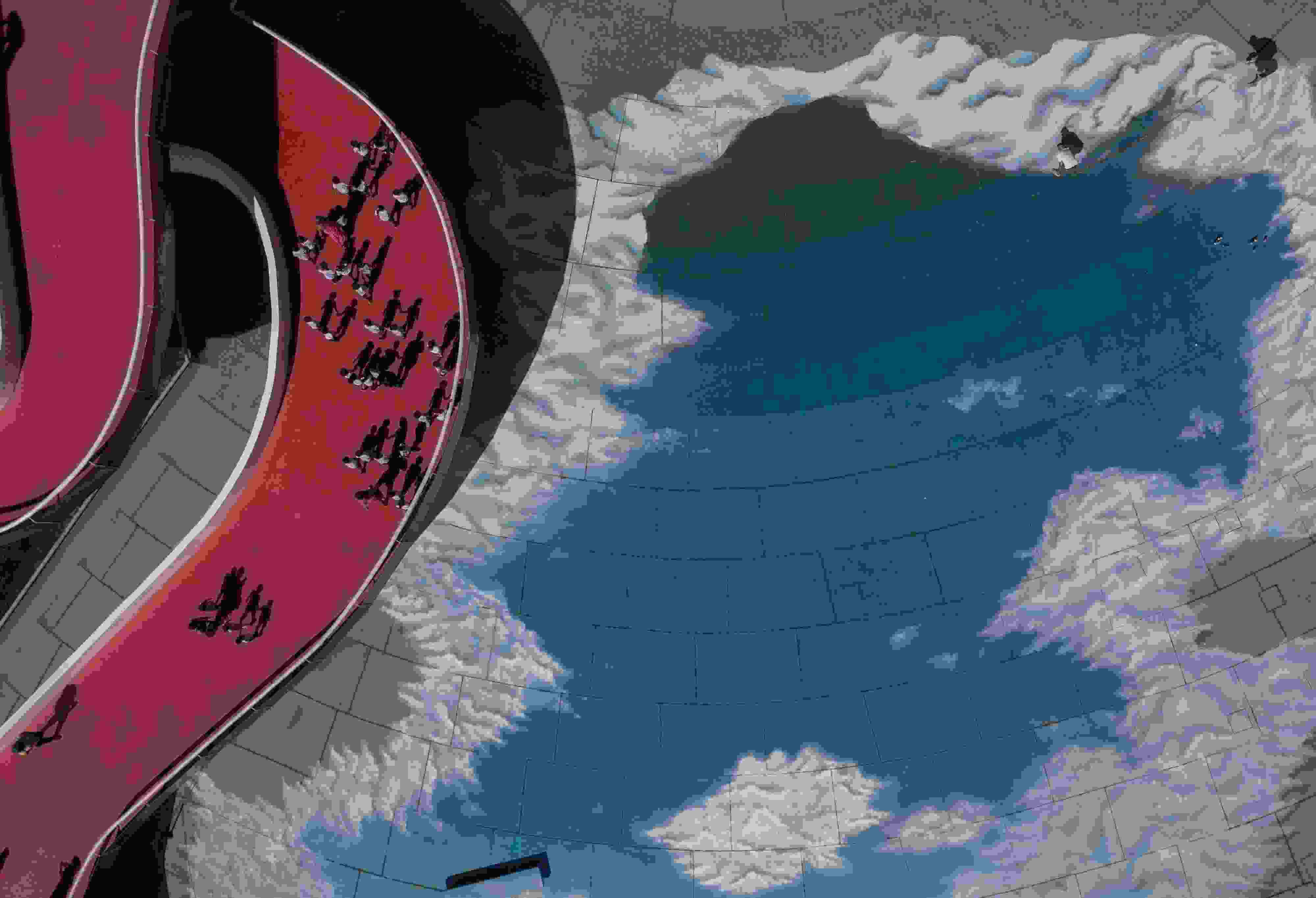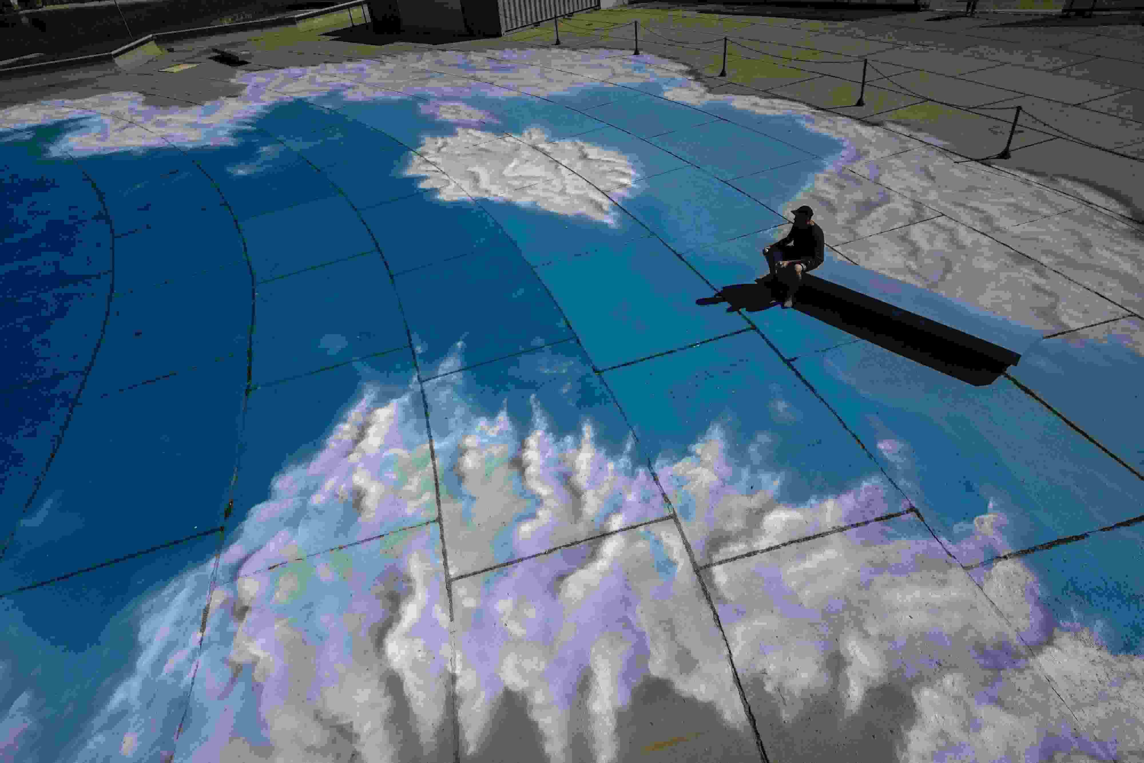 當(dāng)?shù)貢r(shí)間2023年6月6日,巴西里約熱內(nèi)盧,藝術(shù)家在地面上繪制“藍(lán)天白云”。 視覺中國