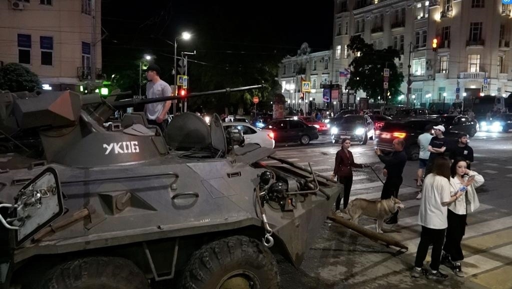 6月24日,在俄羅斯頓河畔羅斯托夫,瓦格納組織車隊駛過。新華社/塔斯社