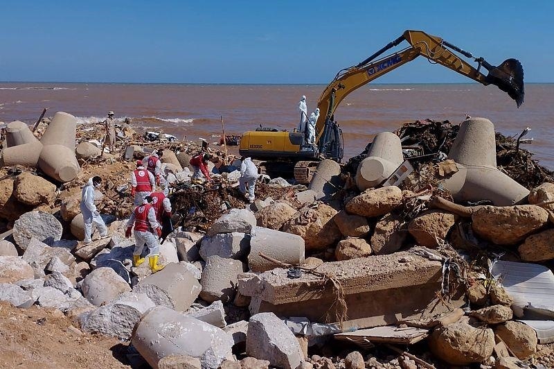 △救援人員正在德爾納市海濱進行搜救工作
