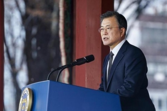 2021年3月1日,韓國時任總統(tǒng)文在寅在首爾塔谷公園發(fā)表講話。新華社發(fā)(青瓦臺供圖)
