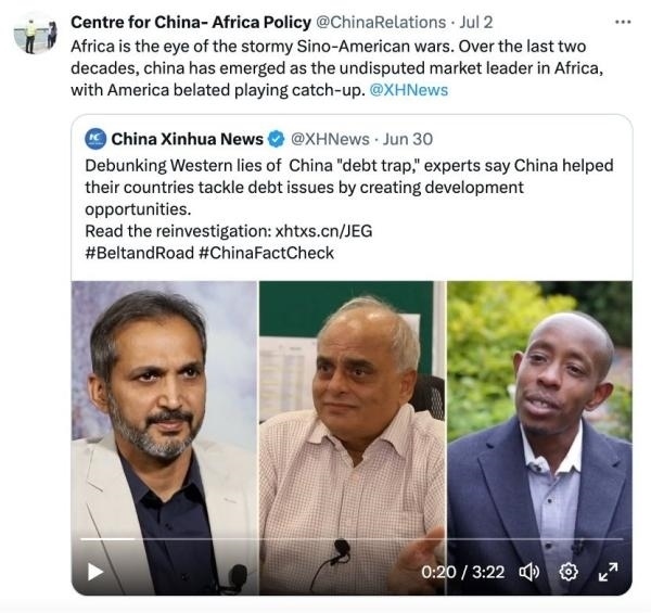 網(wǎng)友“強力挑戰(zhàn)者2269”直言:“如果西方政府和媒體告訴你,你陷入了中國的‘債務(wù)陷阱’,那證明你做對了。對待西方媒體和政府宣傳的信息,你得反著看?!?/p>