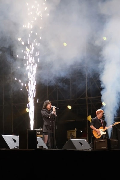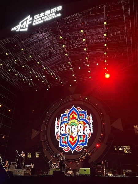 中國金屬硬搖滾樂的先驅(qū)——面孔樂隊(duì)演唱了《英雄》《幻覺》等經(jīng)典歌曲,讓人夢回青蔥歲月。當(dāng)熟悉的《愛不愛我》響起時,全場觀眾都在齊聲合唱,周曉鷗也帶來了多首自己的新歌。羅琦的《我是一只小小鳥》瞬間激起了所有樂迷的熱情。王北車與觀眾開展了近距離互動,觀眾伴隨著音樂搖擺吶喊,掀起一波又一波熱潮。來自草原的杭蓋樂隊(duì)一上臺就引起了觀眾的熱烈反響,蒙古民間音樂與搖滾樂在草原激情碰撞。舞臺上,音符律動、唱跳狂嗨;舞臺下,尖叫不斷,釋放激情。