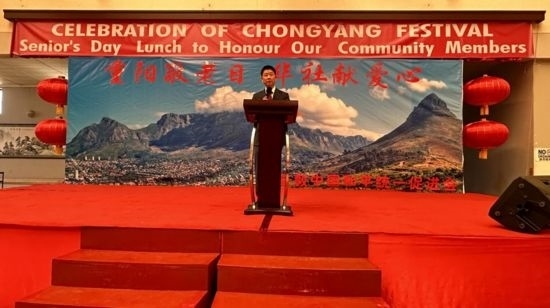 新華網(wǎng)開(kāi)普敦10月23日電(記者王雷 王曉梅)為迎接重陽(yáng)節(jié)到來(lái),南非立法首都開(kāi)普敦的華僑華人和當(dāng)?shù)孛癖?2日在開(kāi)普敦中華會(huì)館齊聚一堂,參加“重陽(yáng)敬老日 華社獻(xiàn)愛(ài)心”慶?;顒?dòng)。