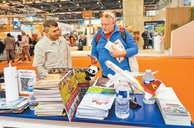 記者看到,中國展區(qū)以國寶大熊貓為主推形象,融合中國紅、祥云紋、竹子等特色元素,展示了中國旅游的獨(dú)特魅力。在3天的活動(dòng)中,中國展區(qū)重點(diǎn)推介了“你好!中國”赴華旅游線路,以及京粹文化、“中國入境旅游第一站”上海、“古絲綢之路起點(diǎn)”陜西、“千湖之省”湖北等旅游產(chǎn)品。