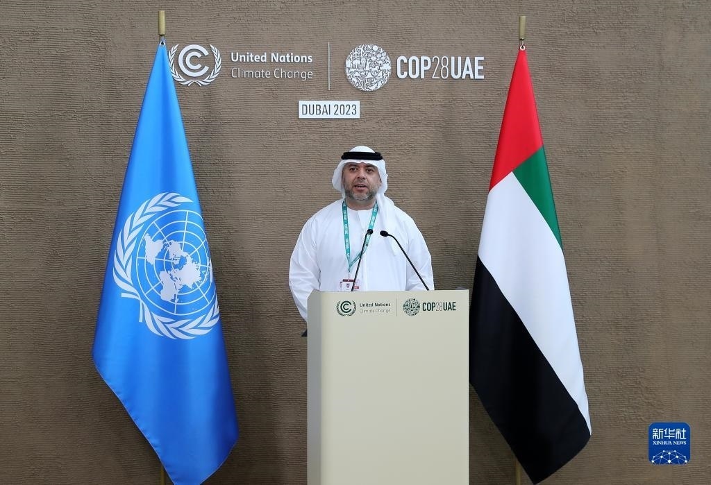 12月12日,在阿聯(lián)酋迪拜,COP28總干事馬吉德·蘇韋迪在新聞發(fā)布會(huì)上回答記者提問(wèn)。新華社記者 王東震 攝