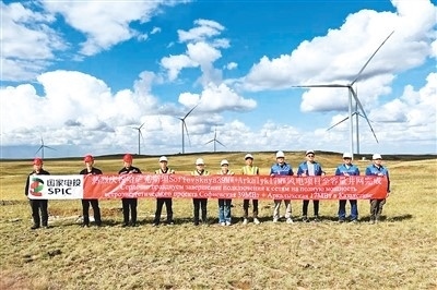哈薩克斯坦阿克莫拉州二期風(fēng)電項(xiàng)目并網(wǎng)現(xiàn)場(chǎng)。資料圖片