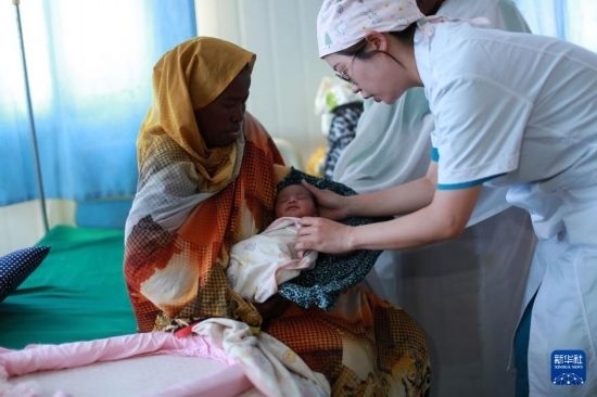2023年2月22日,中國援蘇丹醫(yī)療隊婦產(chǎn)科醫(yī)生劉韡在蘇丹阿布?xì)W舍醫(yī)院的病房為一名新生兒做檢查。新華社發(fā)(中國援蘇丹醫(yī)療隊供圖)
