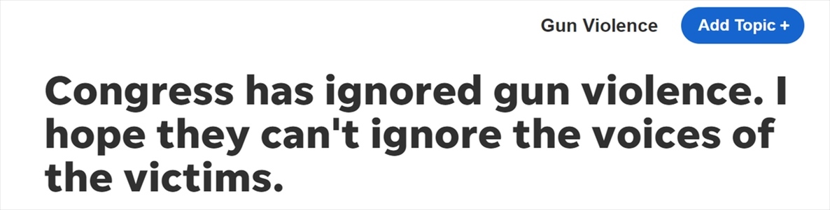 更為不幸的是,美國國會始終未能保護(hù)民眾免于遭受這種恐怖經(jīng)歷,他們對此選擇無視,無視美國的槍支暴力頑疾。