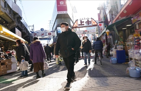 2021年12月28日,人們?cè)谌毡緰|京阿美橫町購(gòu)買促銷商品。新華社發(fā)(克里斯托弗·朱攝)