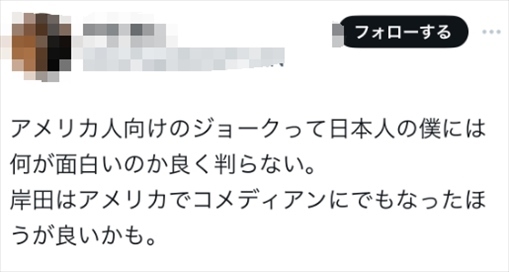 也有人說(shuō),“跟美國(guó)人講的這些笑話,作為日本人的我是真不知道好笑在哪里,可能岸田在美國(guó)當(dāng)個(gè)搞笑藝人比較好?!?/p>