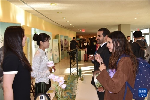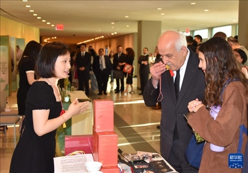 5月21日,在位于紐約的聯(lián)合國總部,人們參加“茶和天下”國際茶日展示和慶祝活動。新華社記者 王建剛 攝