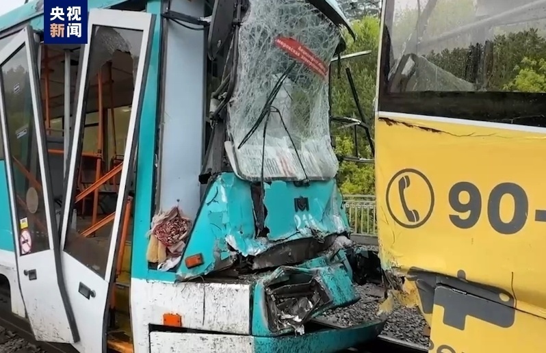 當(dāng)?shù)貢r(shí)間6月6日,俄羅斯克麥羅沃市兩輛有軌電車相撞。