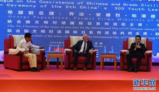 聯(lián)合國文明對話國際日系列活動“中希文明交流互鑒對話”近日在四川省成都市“中華雷鋒志愿者小鎮(zhèn)”舉行。希臘前總理喬治·帕潘德里歐,聯(lián)合國藝術(shù)基金會主席、“2024中華雷鋒志愿者特別行動計劃”負(fù)責(zé)人車夫出席并開展對話。
