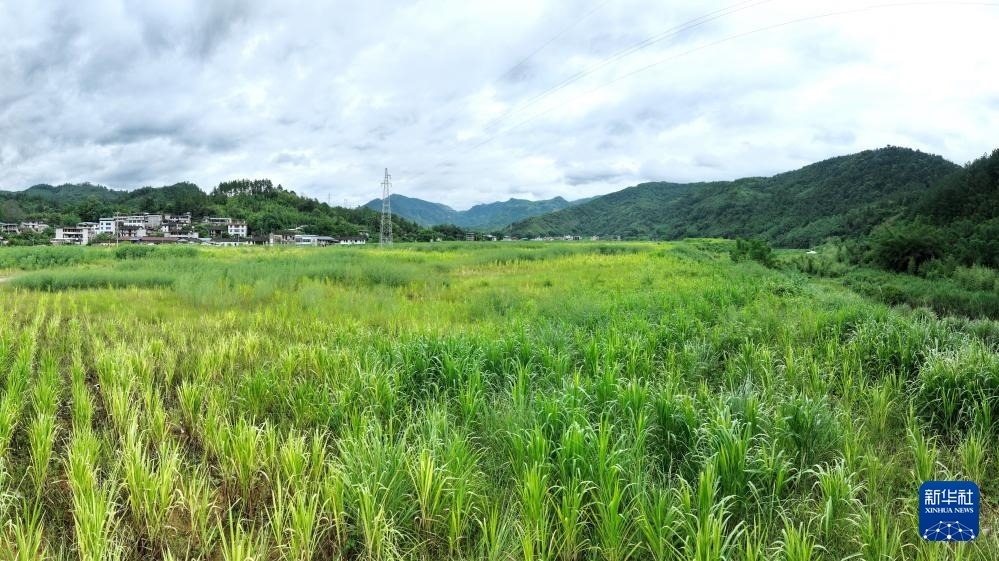 這是8月21日拍攝的位于福建省永泰縣清涼鎮(zhèn)北斗村的“珍農(nóng)菌草富泉羊循環(huán)產(chǎn)業(yè)示范基地”(無人機(jī)照片)。