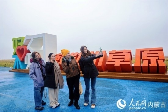 外媒記者在敕勒川草原。人民網(wǎng)記者 張雪冬攝